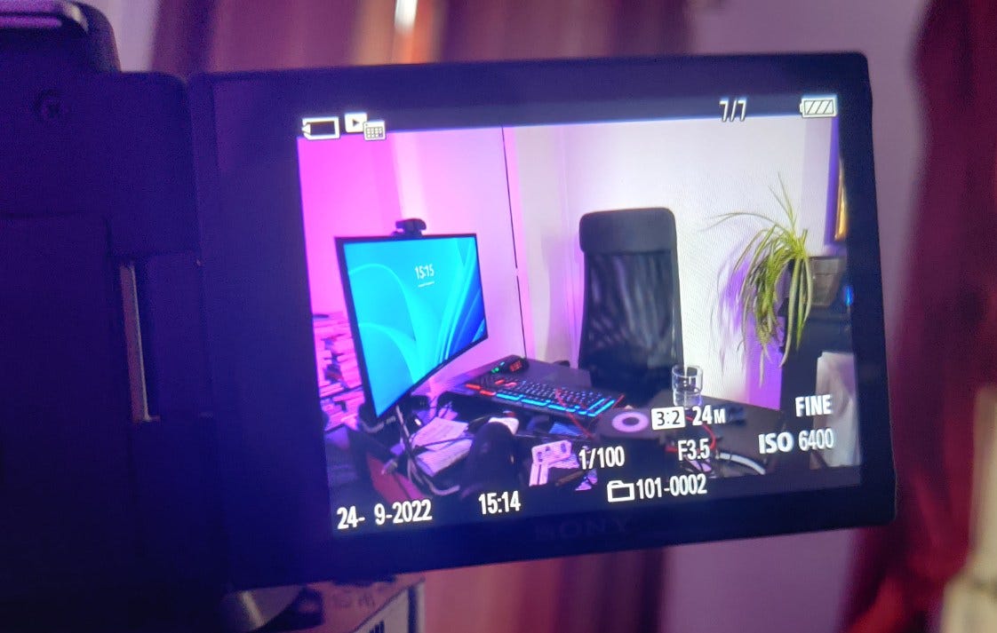 Je suis retombé sur une photo du tout 1er set up que j’ai fait pour les vidéos Youtube. Une nouvelle installation est en cours, j’ai hâte de te montrer ça.